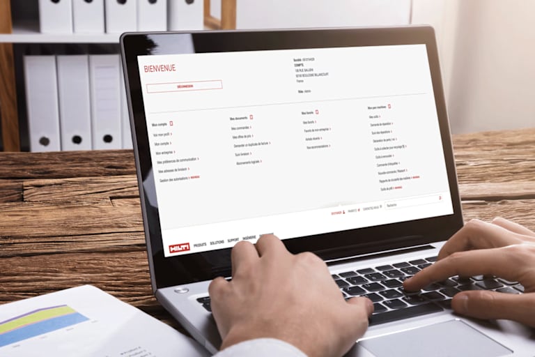 Connectez-vous à votre compte hilti.fr et rendez-vous dans la rubrique « Mes documents » du tableau de bord.